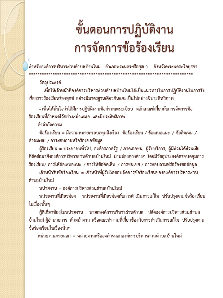 - ขั้นตอนการปฏิบัติงานการจัดการข้อร้องเรียน