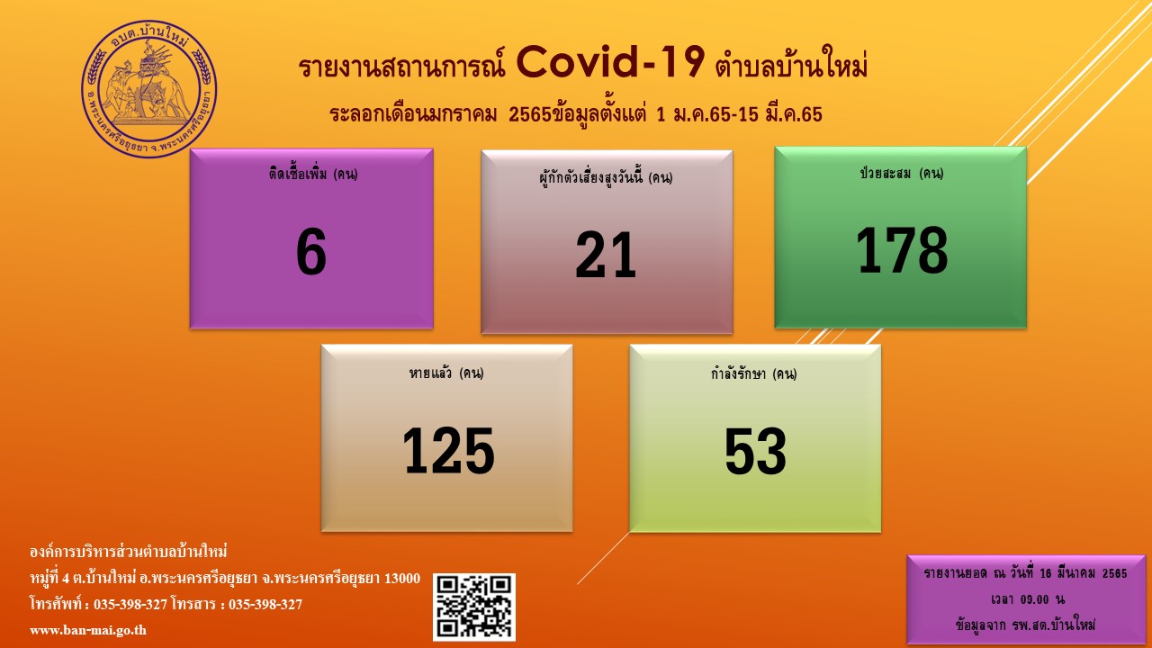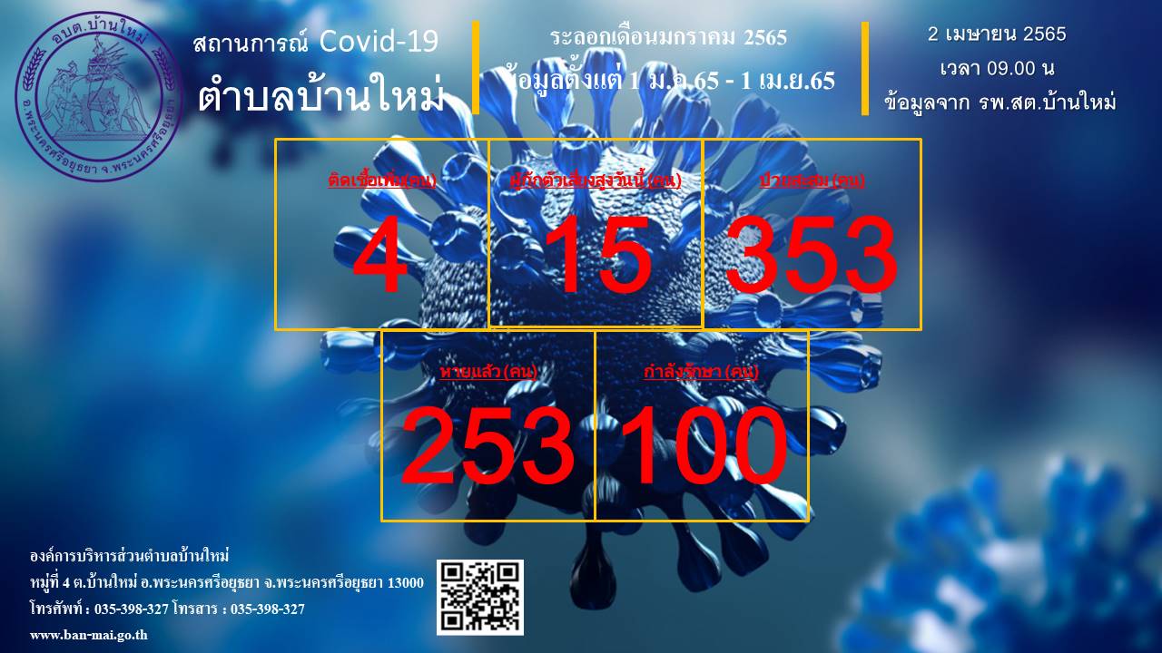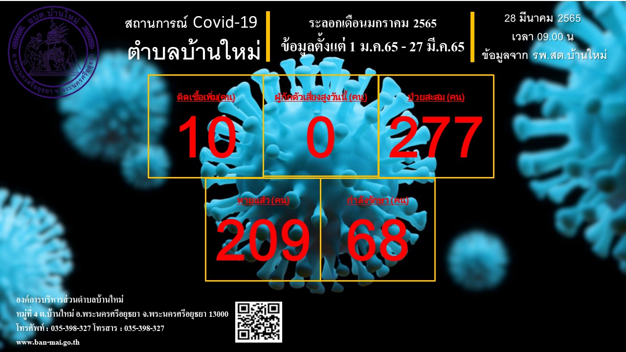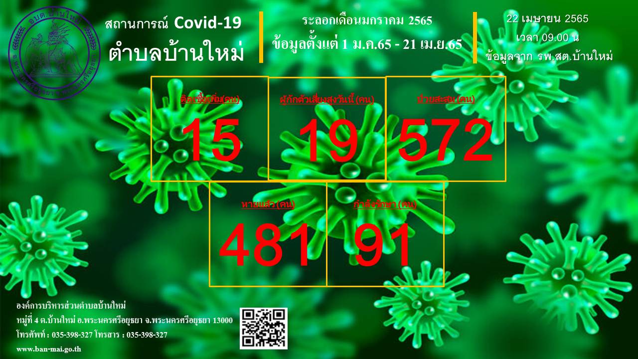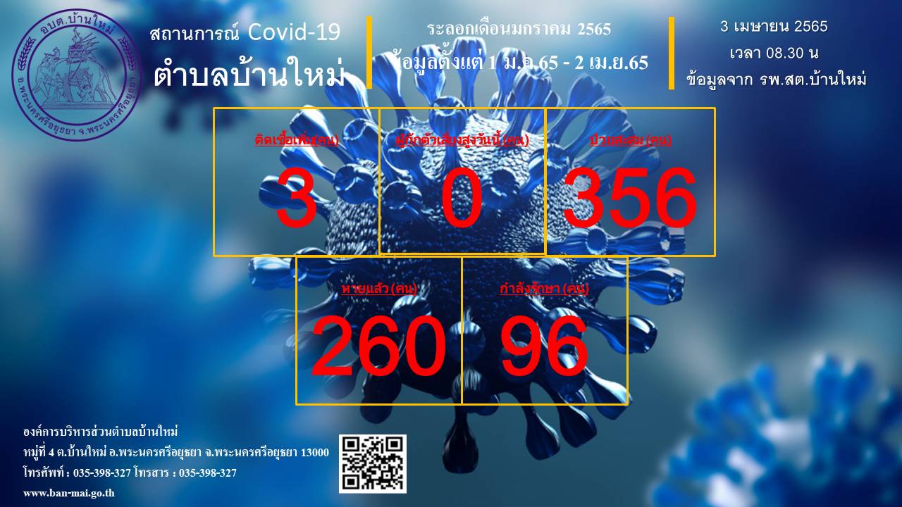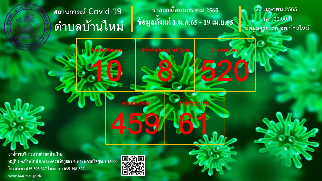 รายงานสถิติสถานการณ์โรคติดเชื้อไวรัสโคโรน่า 2019 ตำบลบ้านใหม่