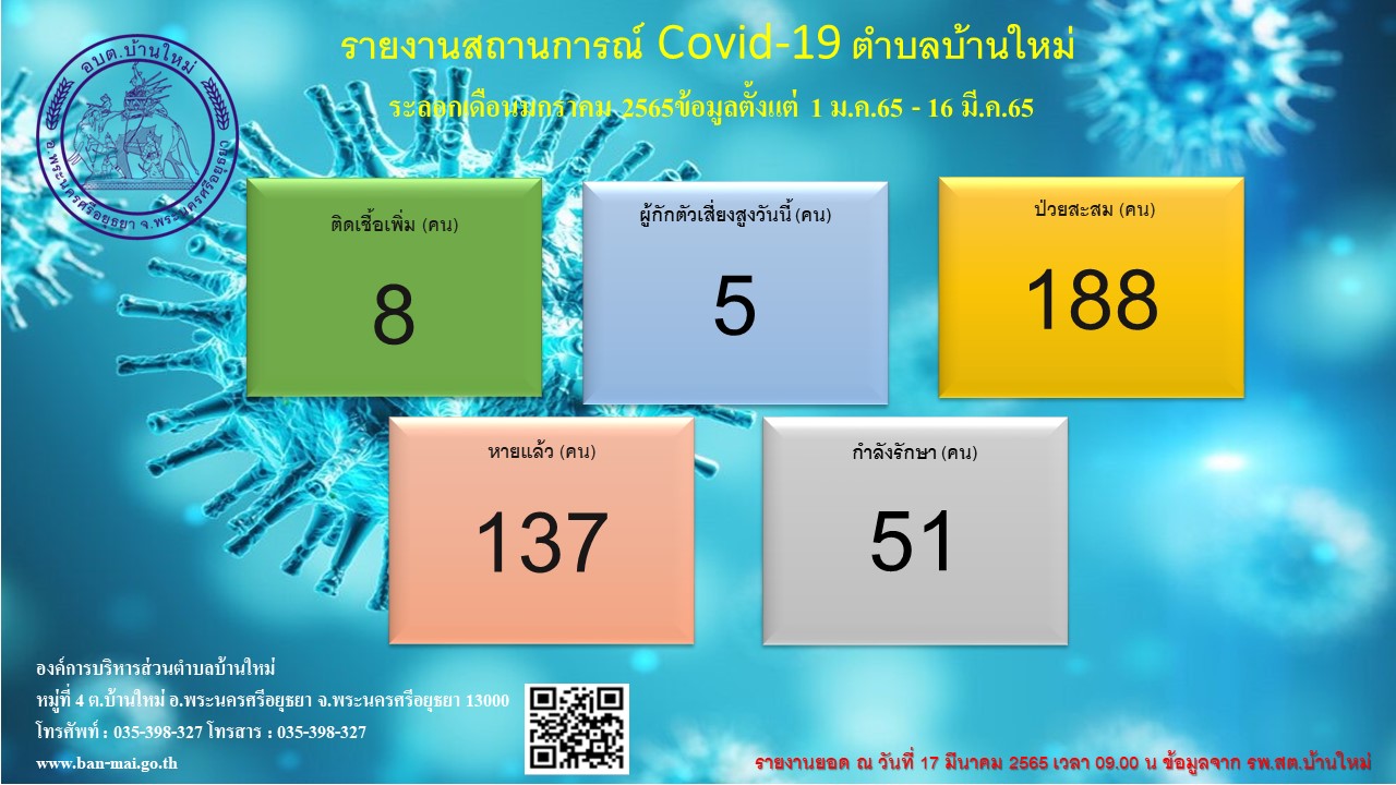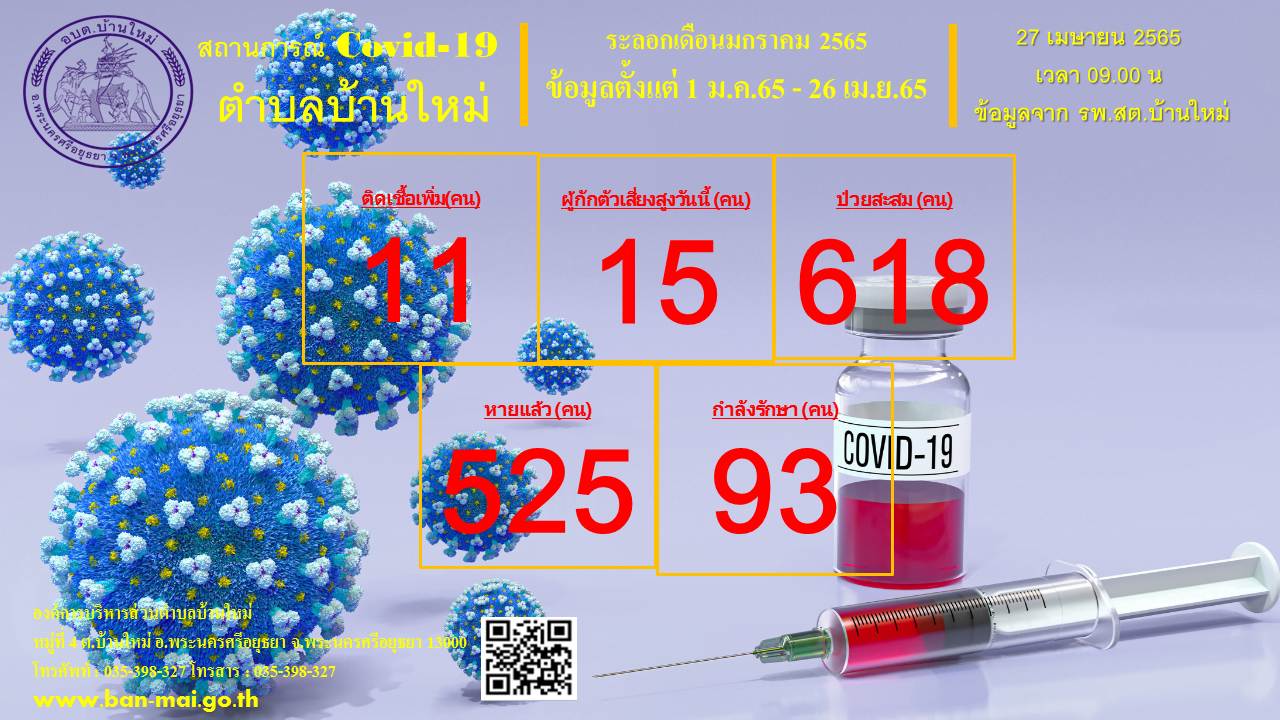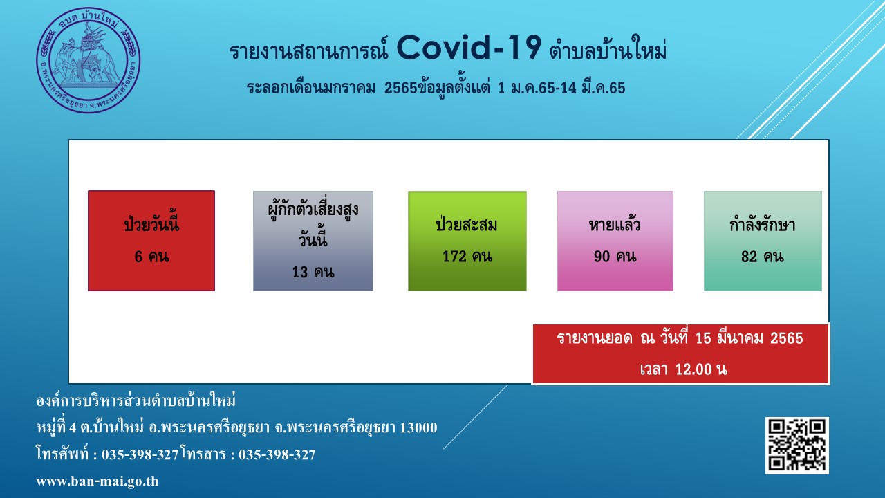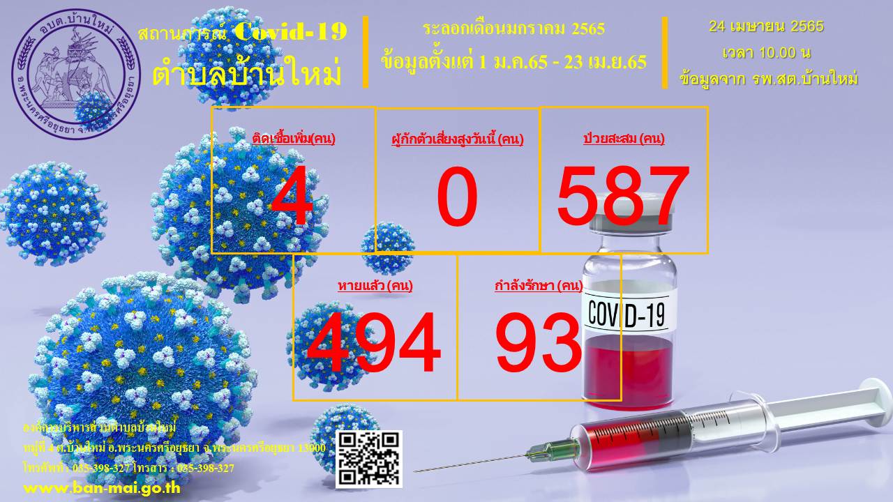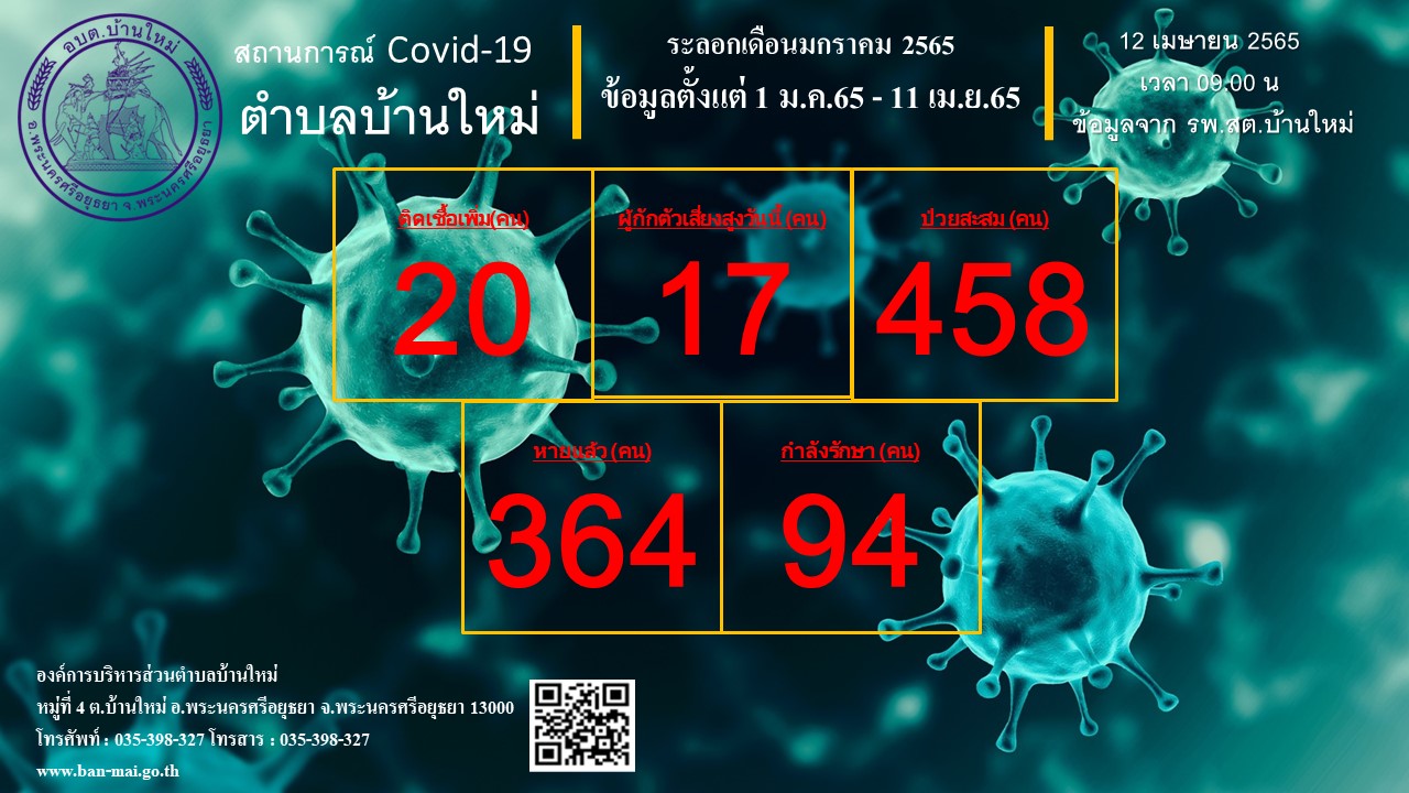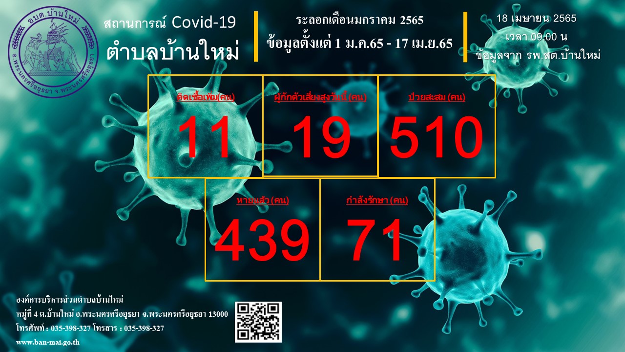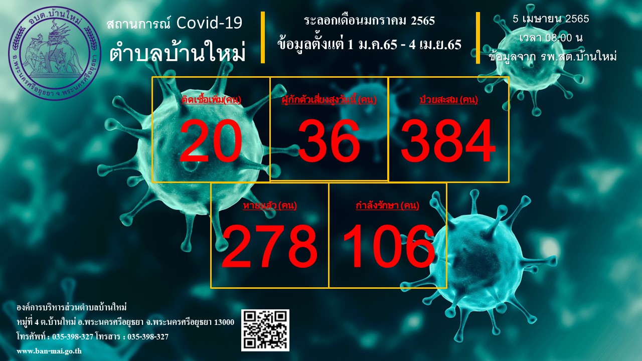 รายงานสถิติสถานการณ์โรคติดเชื้อไวรัสโคโรน่า 2019 ตำบลบ้านใหม่